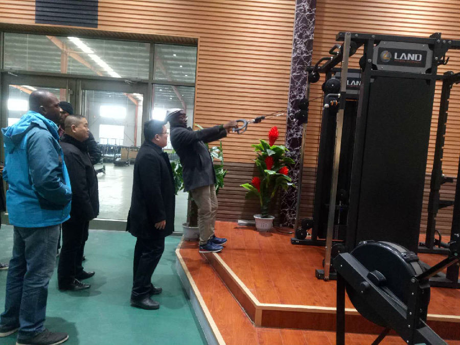 Mr. Li Yang, the general manager of LAND FITNESS , extended a warmly welcome to them .He introduced the strength of LAND FITNESS and details of sales to them . With the accompany of Mr.Li, The Nigerian minister of construction visited our showroom and production lines. During visiting, they highly appraised of our production capacity , high quality products and top engineering levels. At last, two sides reached consensus on the future cooperation.
